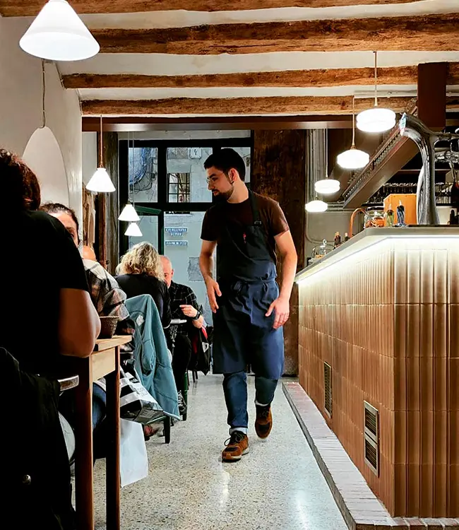 Es van escollir colors que recorden a la cuina i a la terra, molt presents en aquest projecte, a més d'alguns tocs en certs elements de colors oliva, tan present en la cuina mediterrània que treballen en aquest restaurant.